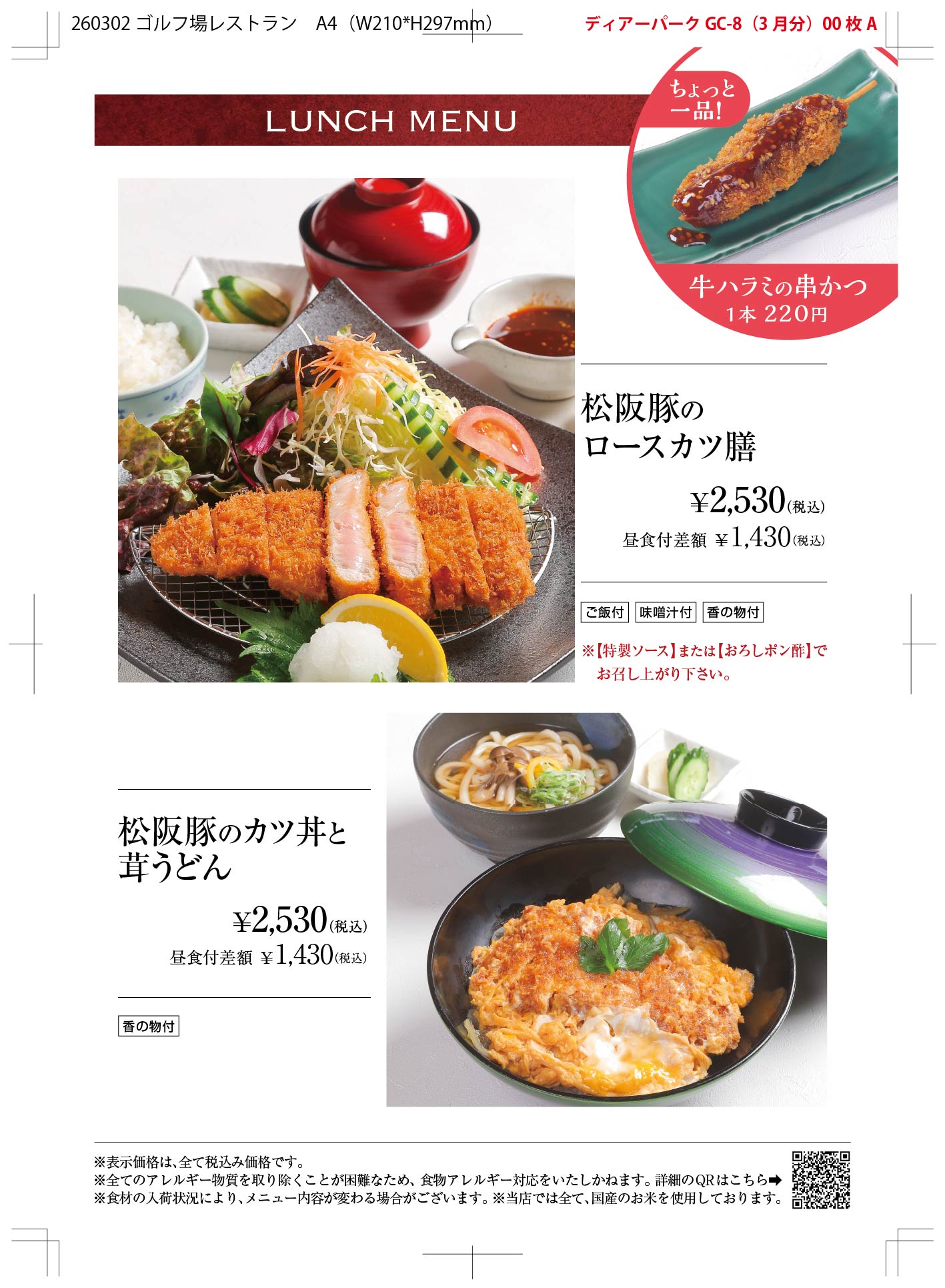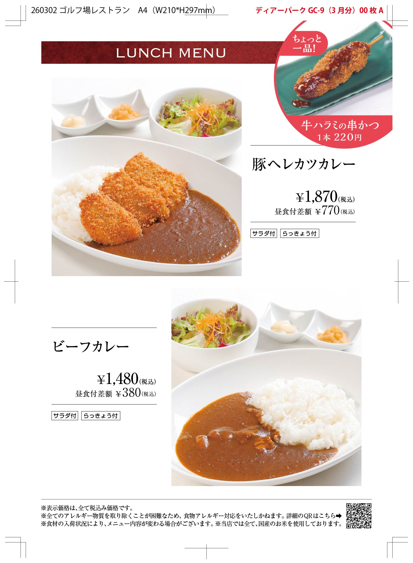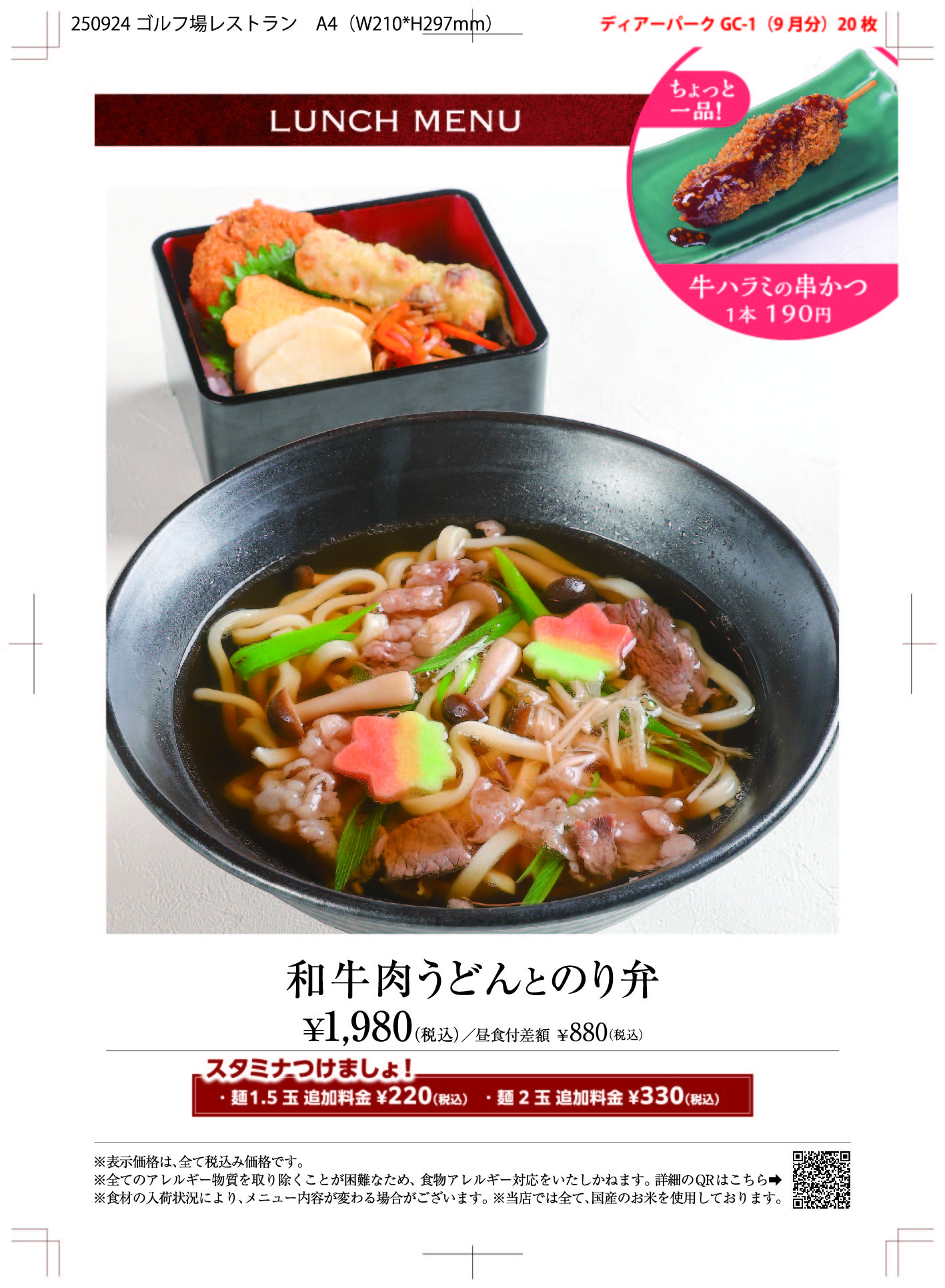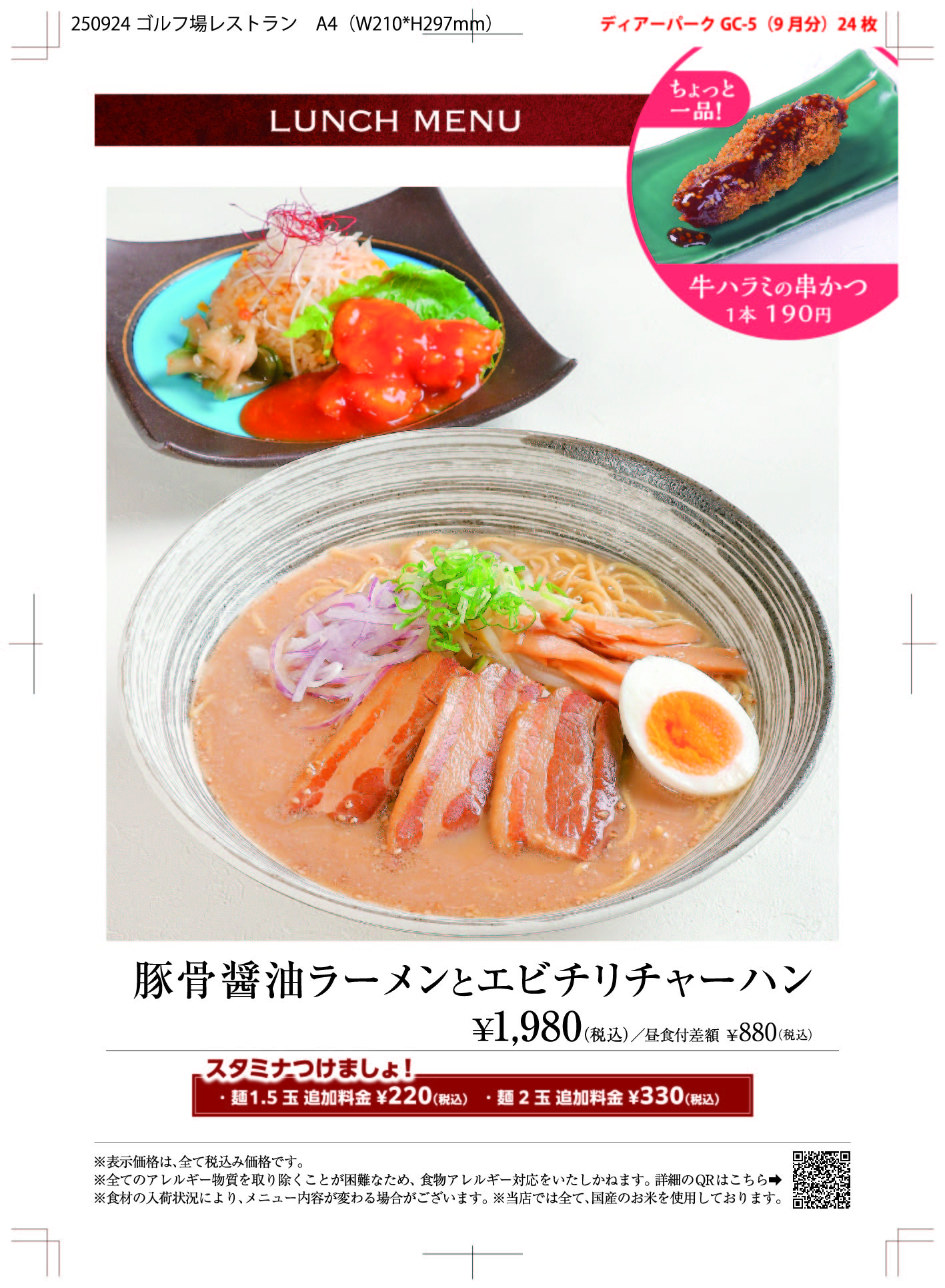 レストラン昼食メニュー