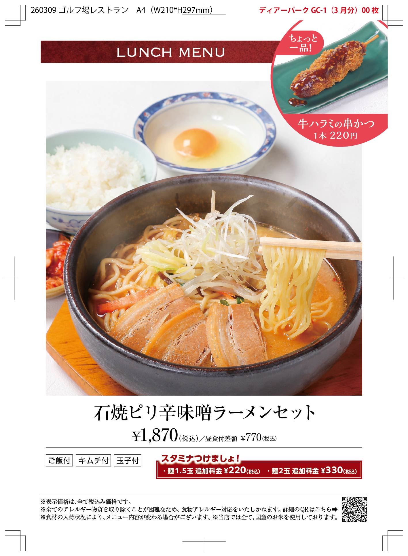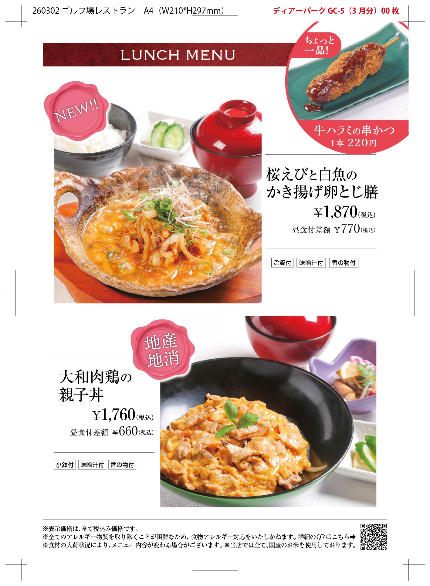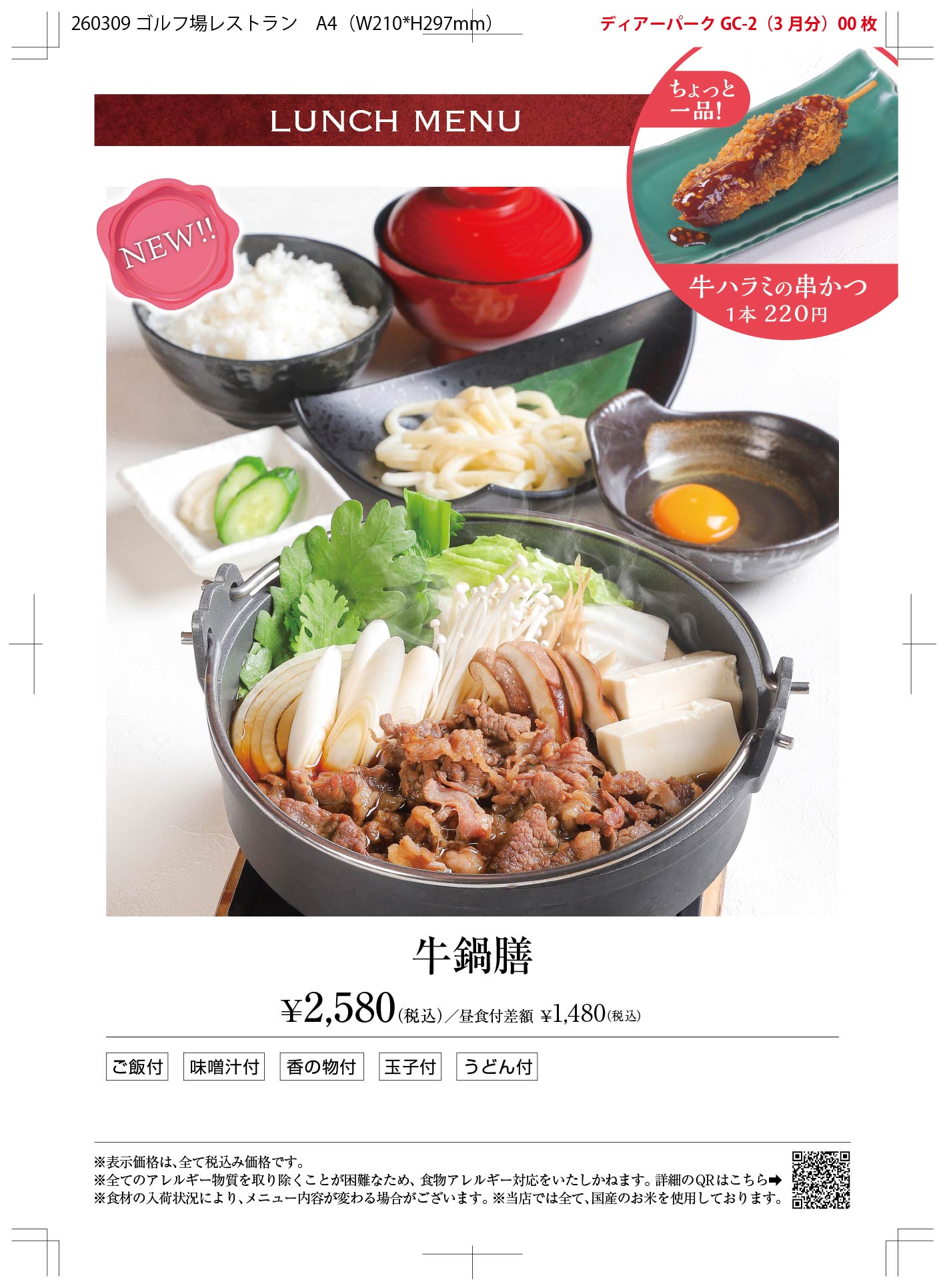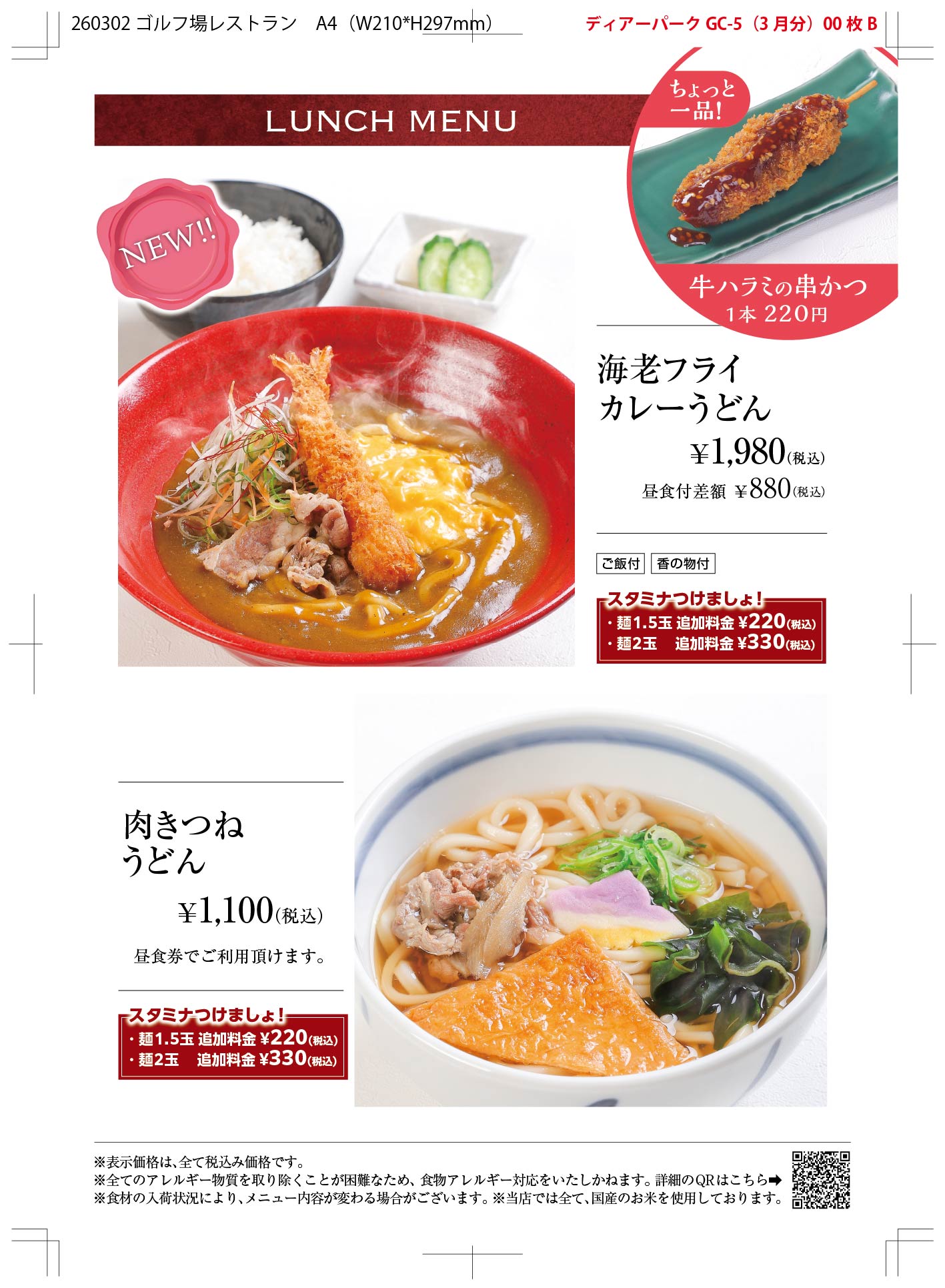 レストラン昼食メニュー